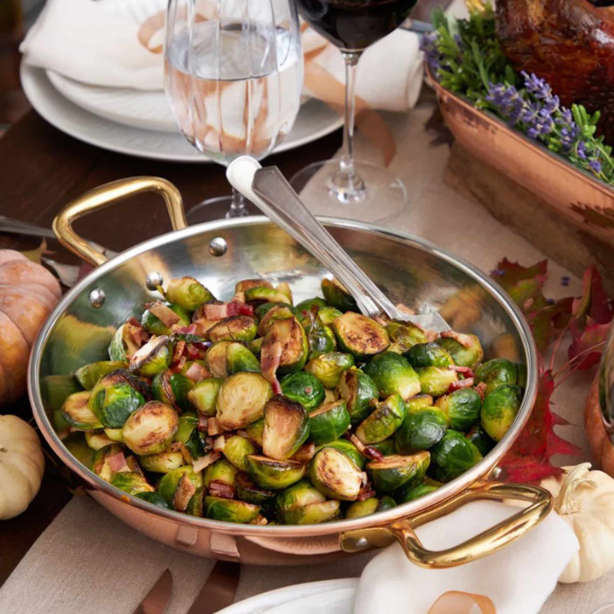 Copper offers excellent heat conductivity. This pan is perfect for rice dishes, stir frying and sautéing. Add the lid to simmer sauces or wilt leafy greens.