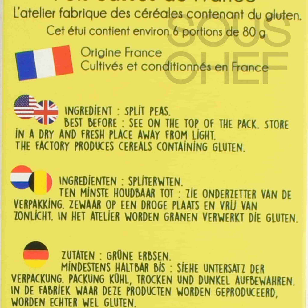 Product formulations and details may change. For the latest ingredients and allergen information always check product packaging prior to consumption. Ingredients: 100% green split peas