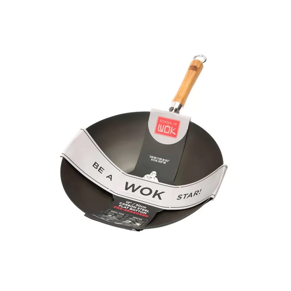 School of Wok Flat Base Pre-Seasoned Carbon Steel Wok