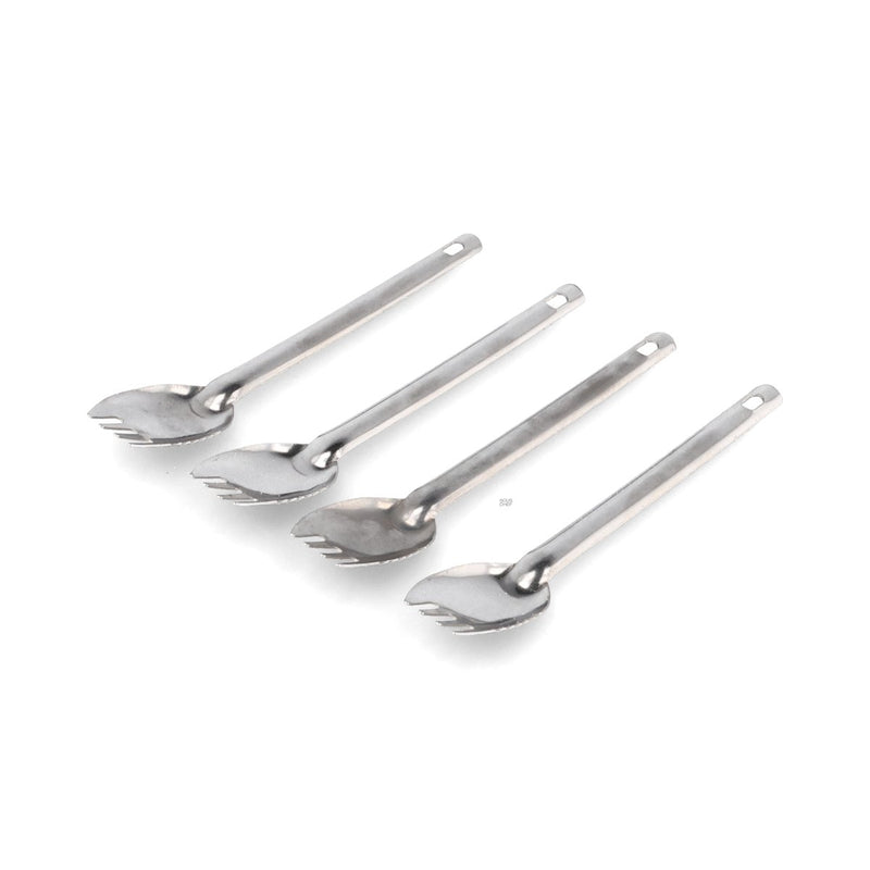 Scoop, slice and skewer with these clever 3-in-1 spoons. Made from stainless steel, the spoon-shaped utensil has tines like a fork. The serrated edge can be used like a knife to cut into pastries and canapés.