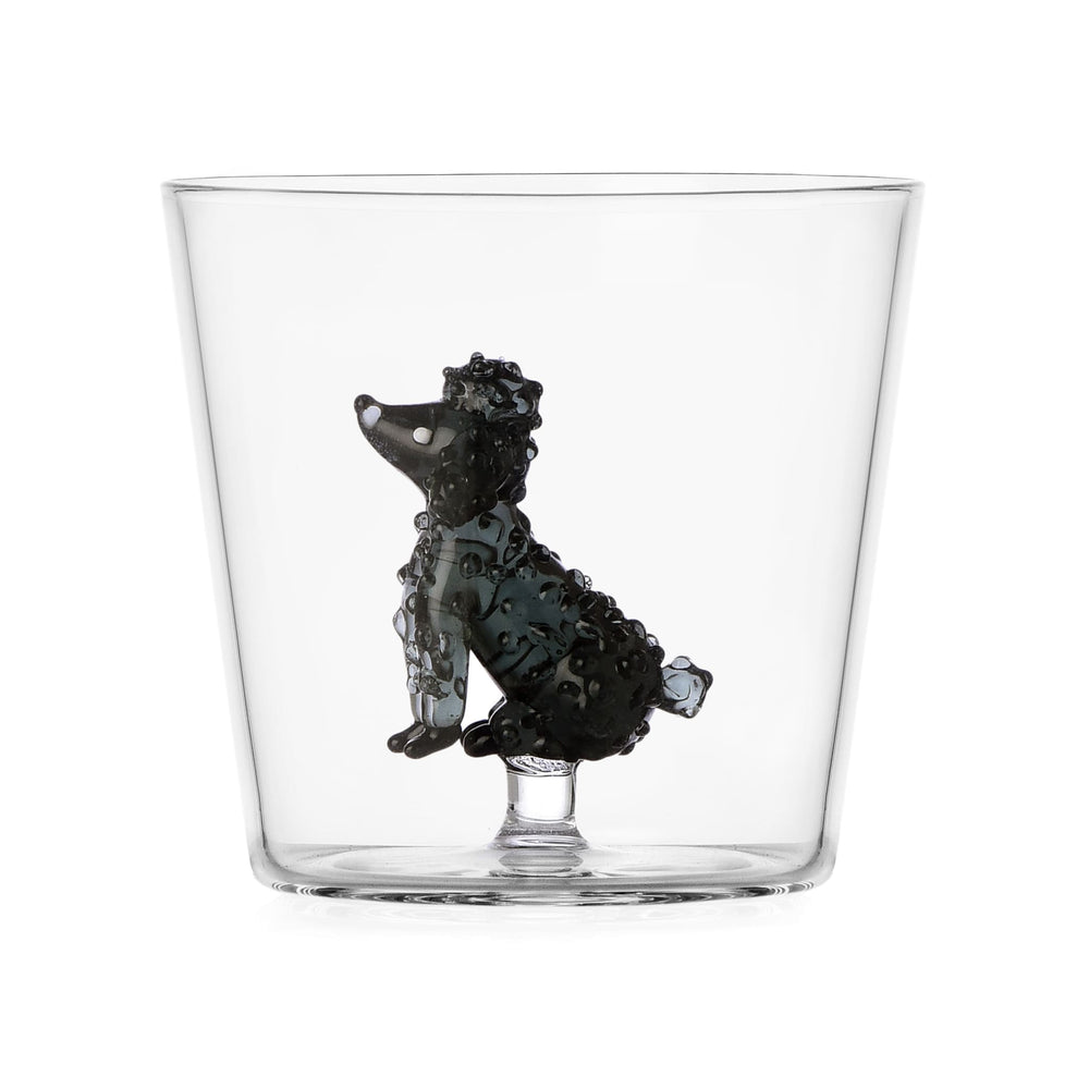 Sip soda and fruit juice from Ichendorf Milano’s poodle tumblers. Made from flame-worked glass, each tumbler has a curly-coated dog inside.