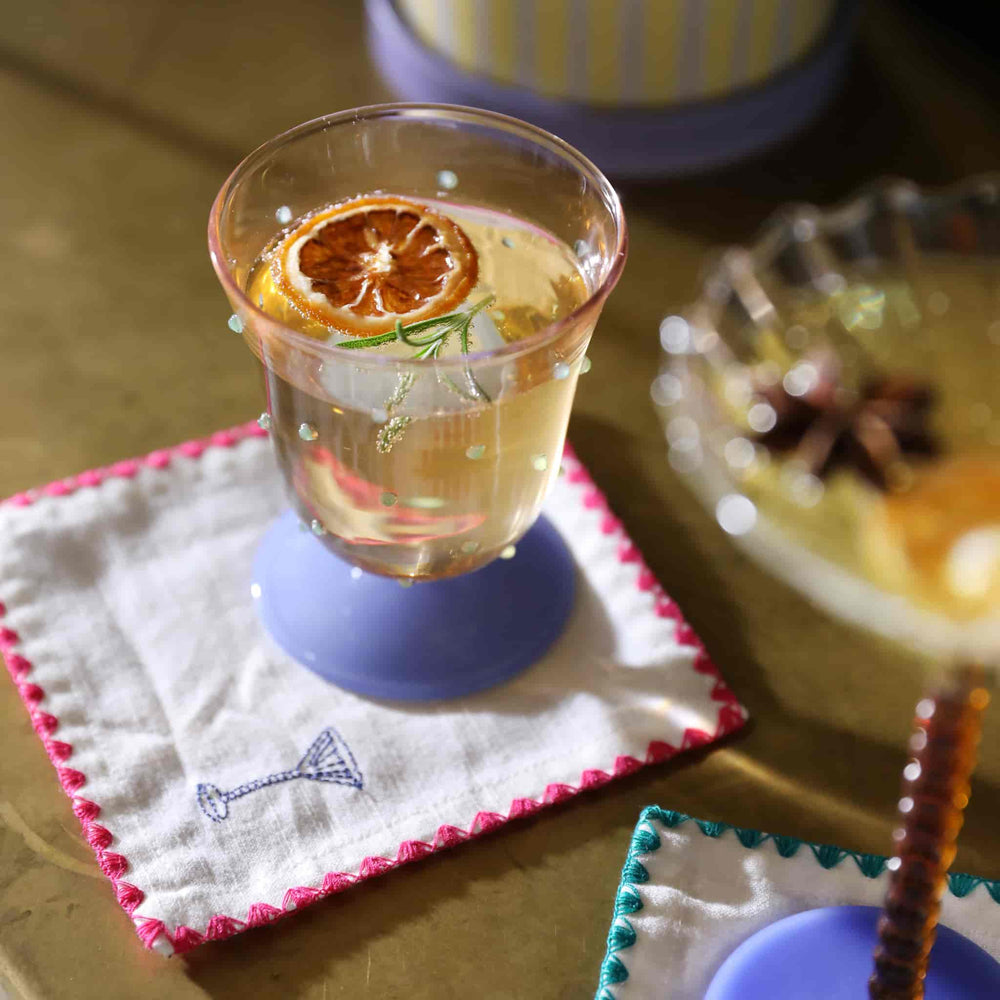 At the corner of each napkin is a tiny cocktail glass. Pair them with your favourite glassware for an elegant home happy hour. They’re not just decorative, they also protect surfaces from water marks.
