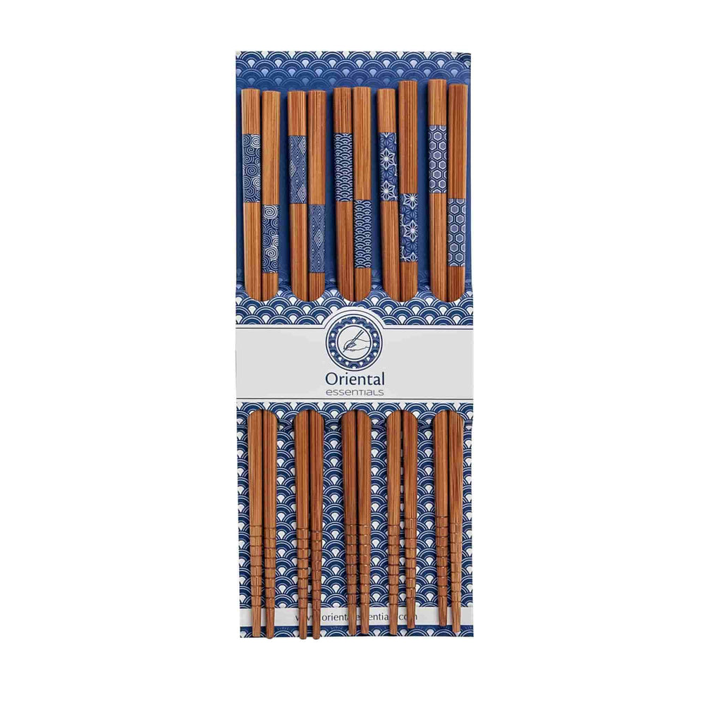 This set of 5 blue wooden chopsticks will complete any sushi meal. These blue chopsticks add a pop of sophisticated colour to any table setting.