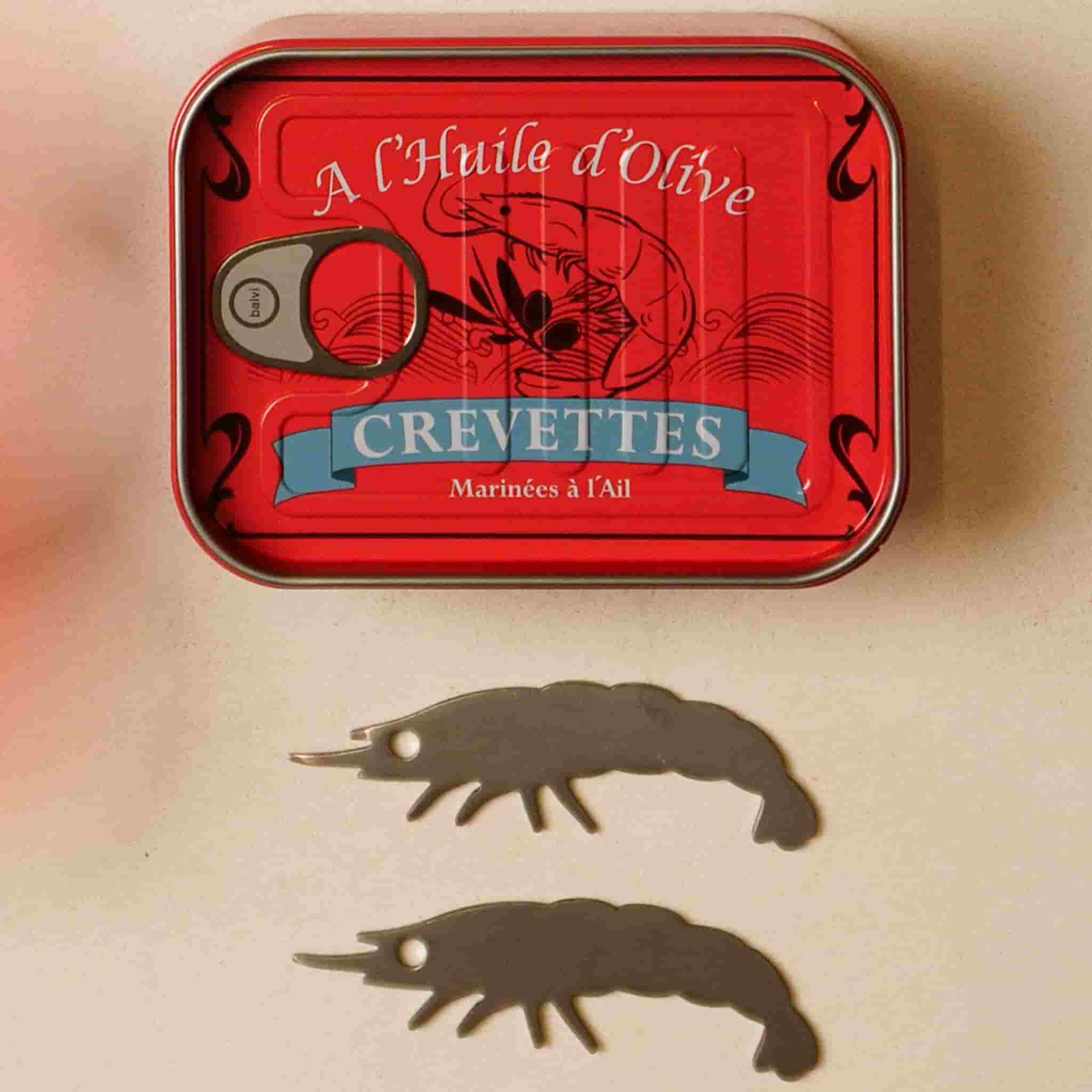The box looks just like the tinned fish you find in delis and tapas bars. It has a realistic ring pull and a vintage shrimp design.