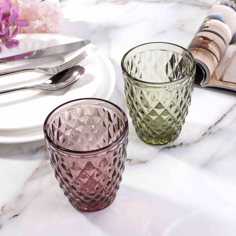These purple tumblers feature an etched diamond design. Their regal purple hue will instantly elevate your table.