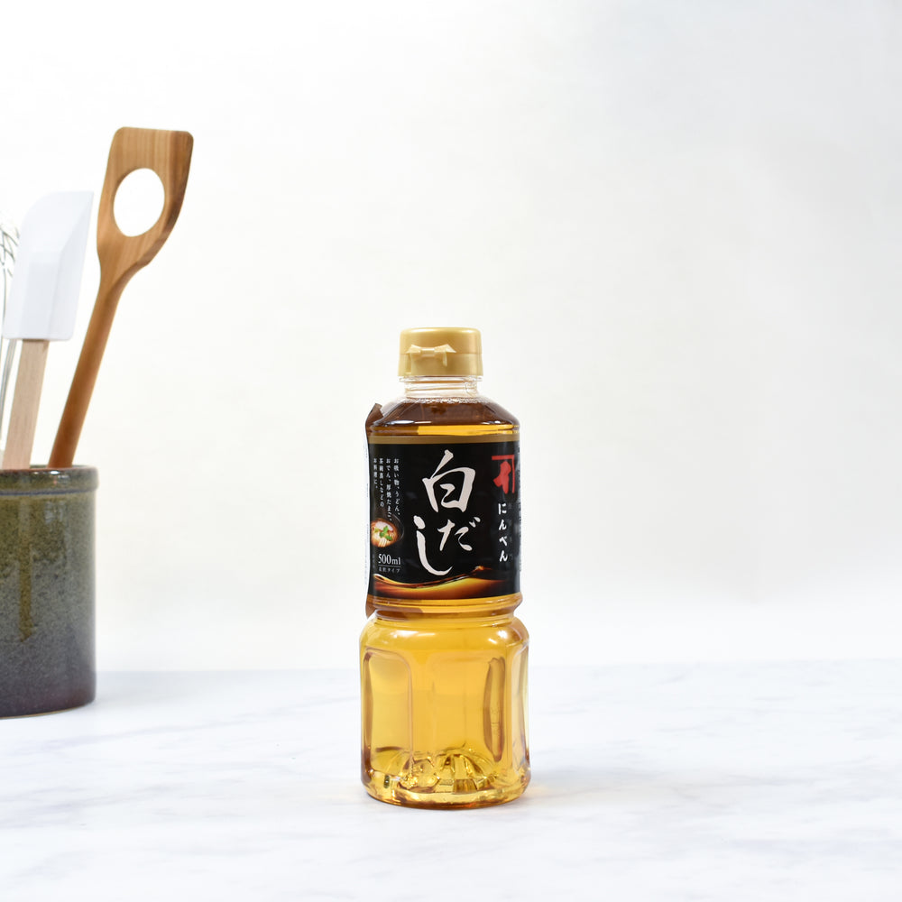 Ninben's shiro dashi liquid - white dashi stock - is a great all round Japanese cooking ingredient. Dashi stock is an infusion of kelp, bonito fish, and dried mackerel which brings a delicate Japanese flavour with a huge hit of umami savouriness to many Japanese dishes.