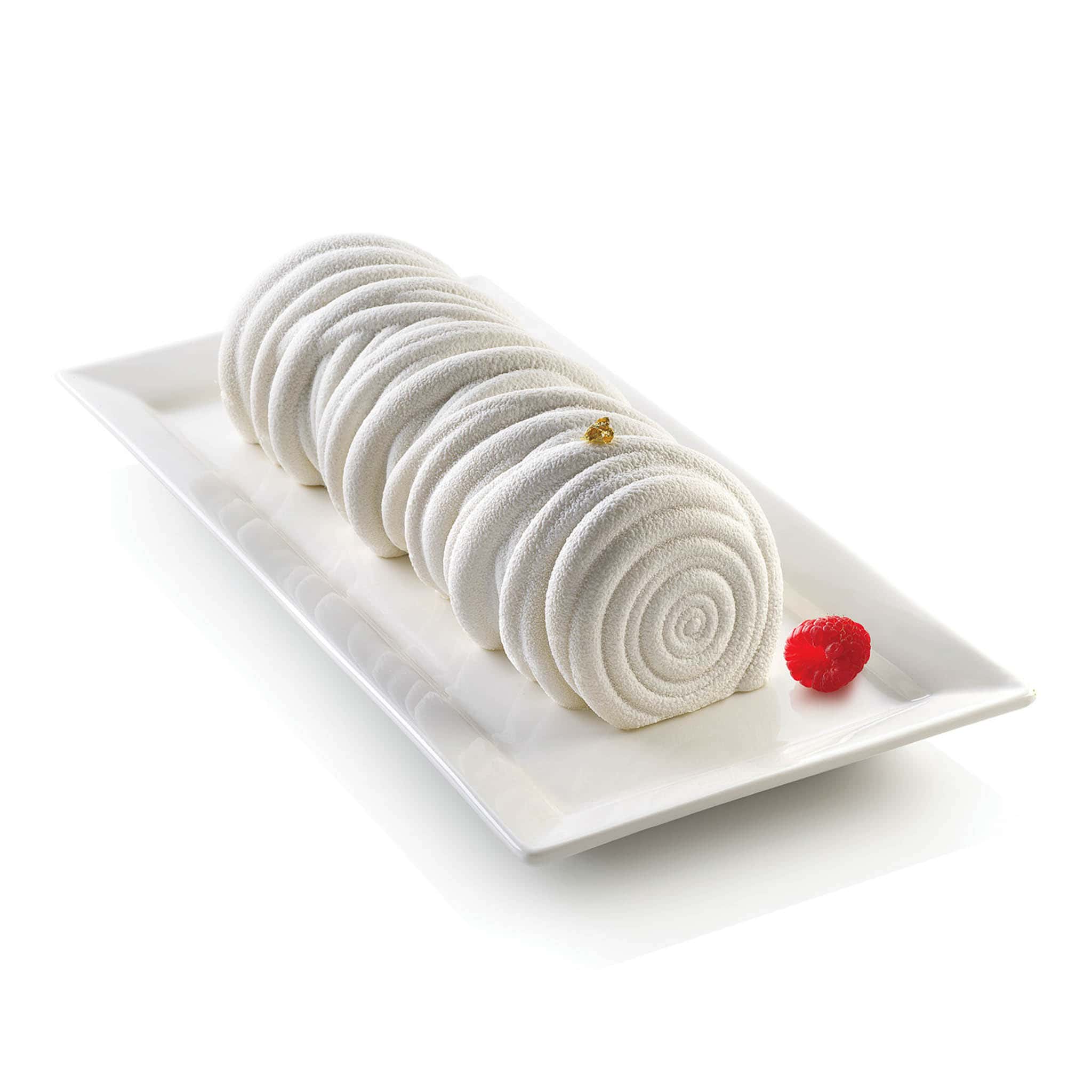 Fill this flexible mould with layers of fruit gel, sponge cake and crème pâtissière. Once set, gently peel the silicone mould from the dessert to reveal a textured surface. The mould shape is striking, so keep your decoration simple with a dusting of icing sugar or spray finish.