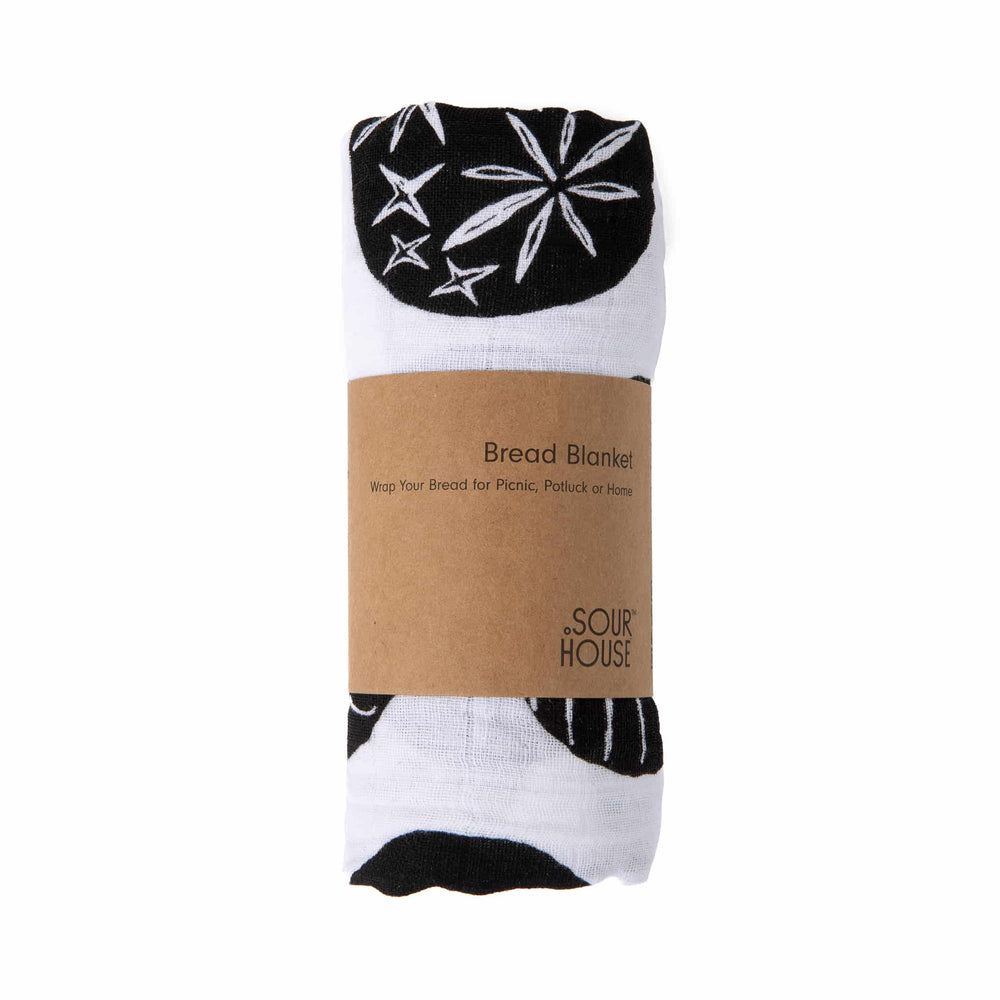 The Sourhouse black bread blanket is a beautifully soft cotton muslin for wrapping and carrying your freshly made loaf.