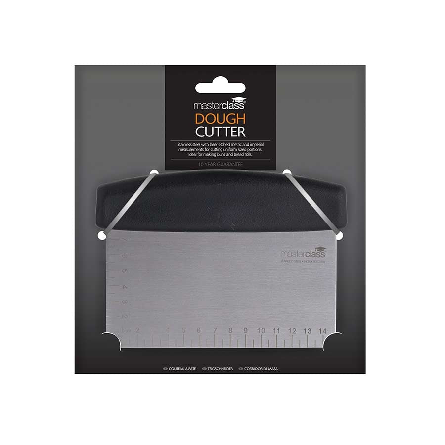 The stainless-steel dough cutter is a must-have utensil for avid bread bakers. Use the cutter to portion large balls of dough into smaller rolls or individual loaves.