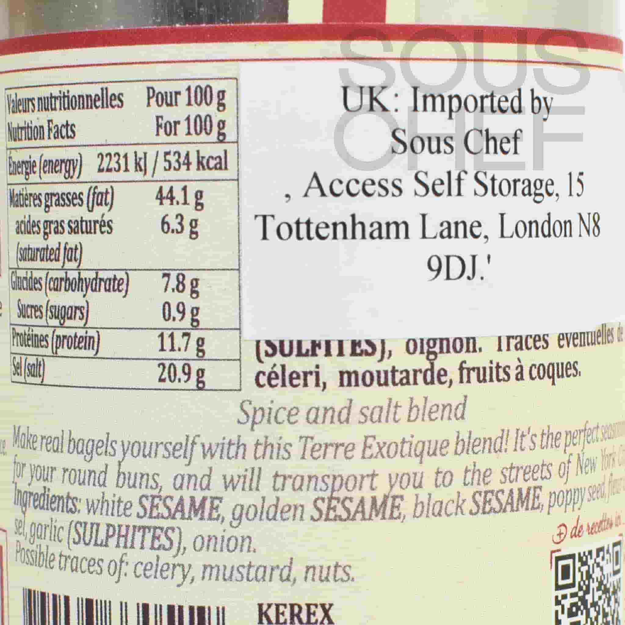 Scatter Terre Exotique bagel blend over bread and rolls before baking. It’s a nutty, savoury seasoning made with three types of sesame. The seeds have a rich, toasted flavour and addictive crunch.