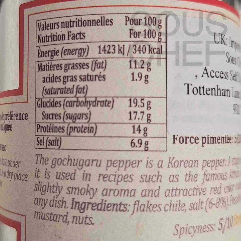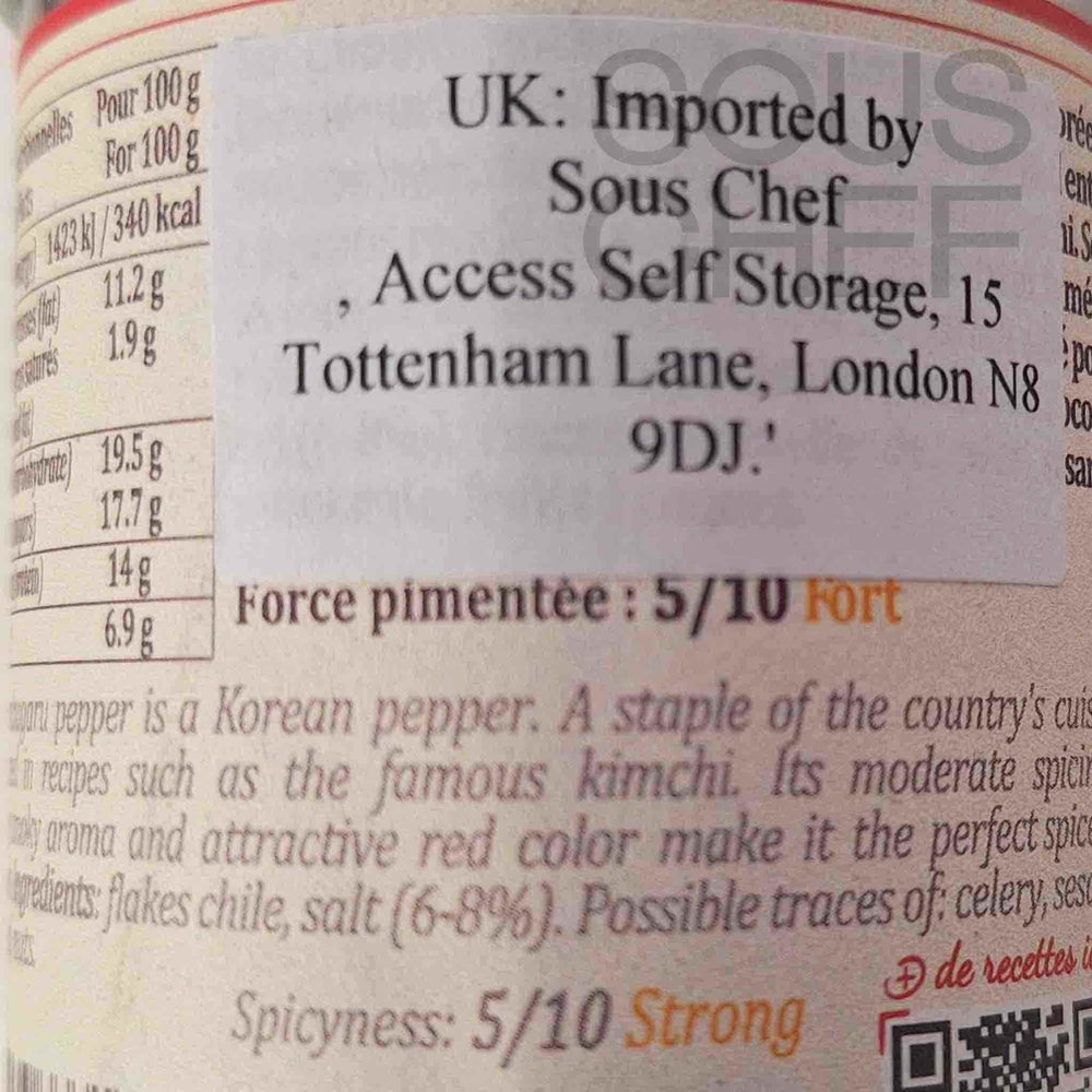 Gochugaru is a type of chilli powder used in Korean cuisine. Bright red in colour, it’s also known as Korean red pepper powder. It has a sweet, smoky aroma and medium spice level. You will find it in many Korean dishes, from fried chicken to kimchi stew.