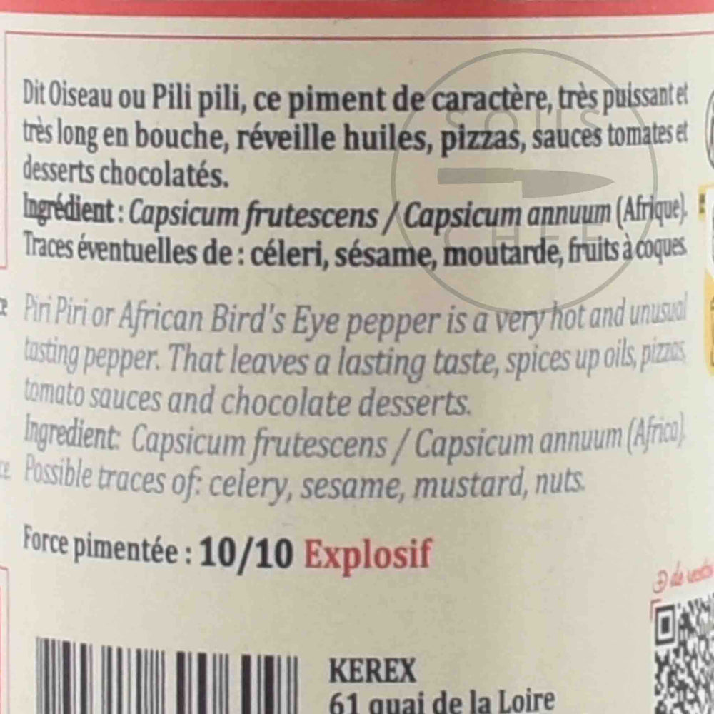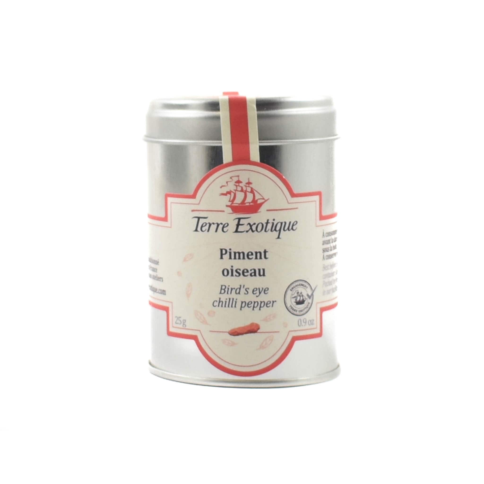 Terre Exotique pili pili chilli pepper powder has a delicate fruity flavour and a surprising level of spice. Also known as bird tongues, the pili pili peppers are grown in La Brenne natural park in central France. They are a key ingredient in the fiery pili pili, or peri peri, sauce which is popular in Portugal and Africa.