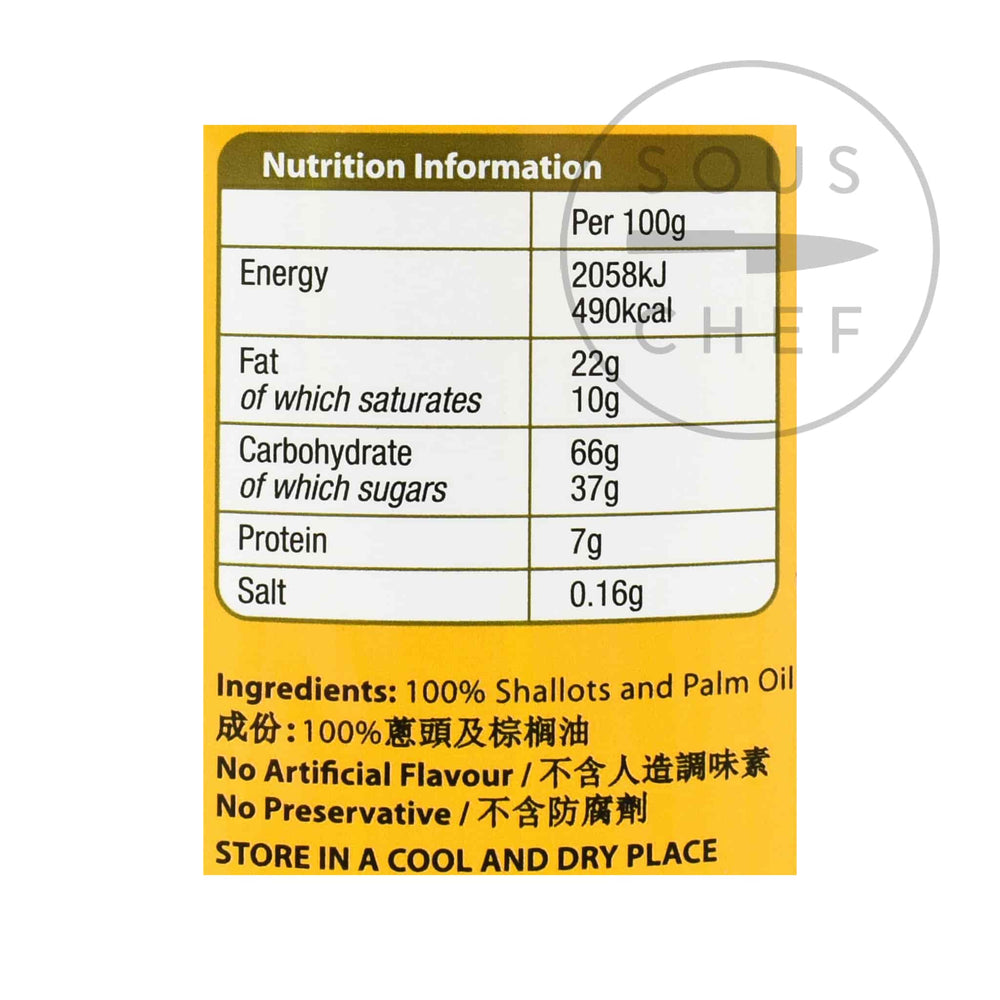 TG pure fried shallot adds a savoury and crispy finishing touch to any dish. These fried shallot flakes add a satisfying crunch and burst of rich onion flavour to complement or contrast any of your favourite savoury dishes, from stir fries to hot dogs.