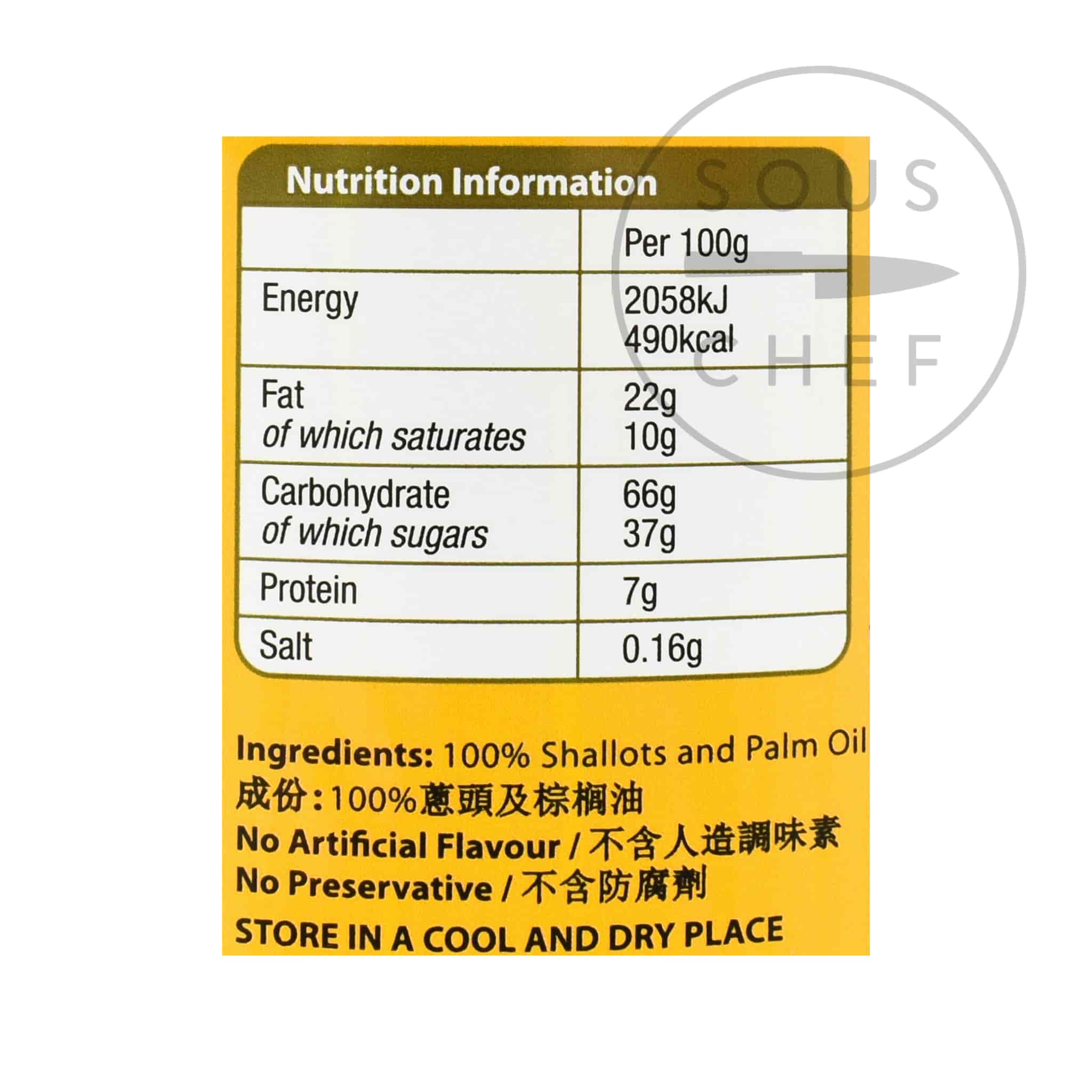 Product formulations and details may change. For the latest ingredients and allergen information always check product packaging prior to consumption. Ingredients: 100% shallots and palm oil