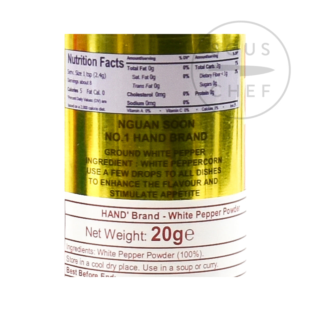 Product formulations and details may change. For the latest ingredients and allergen information always check product packaging prior to consumption. Ingredients: 100% ground white pepper powder