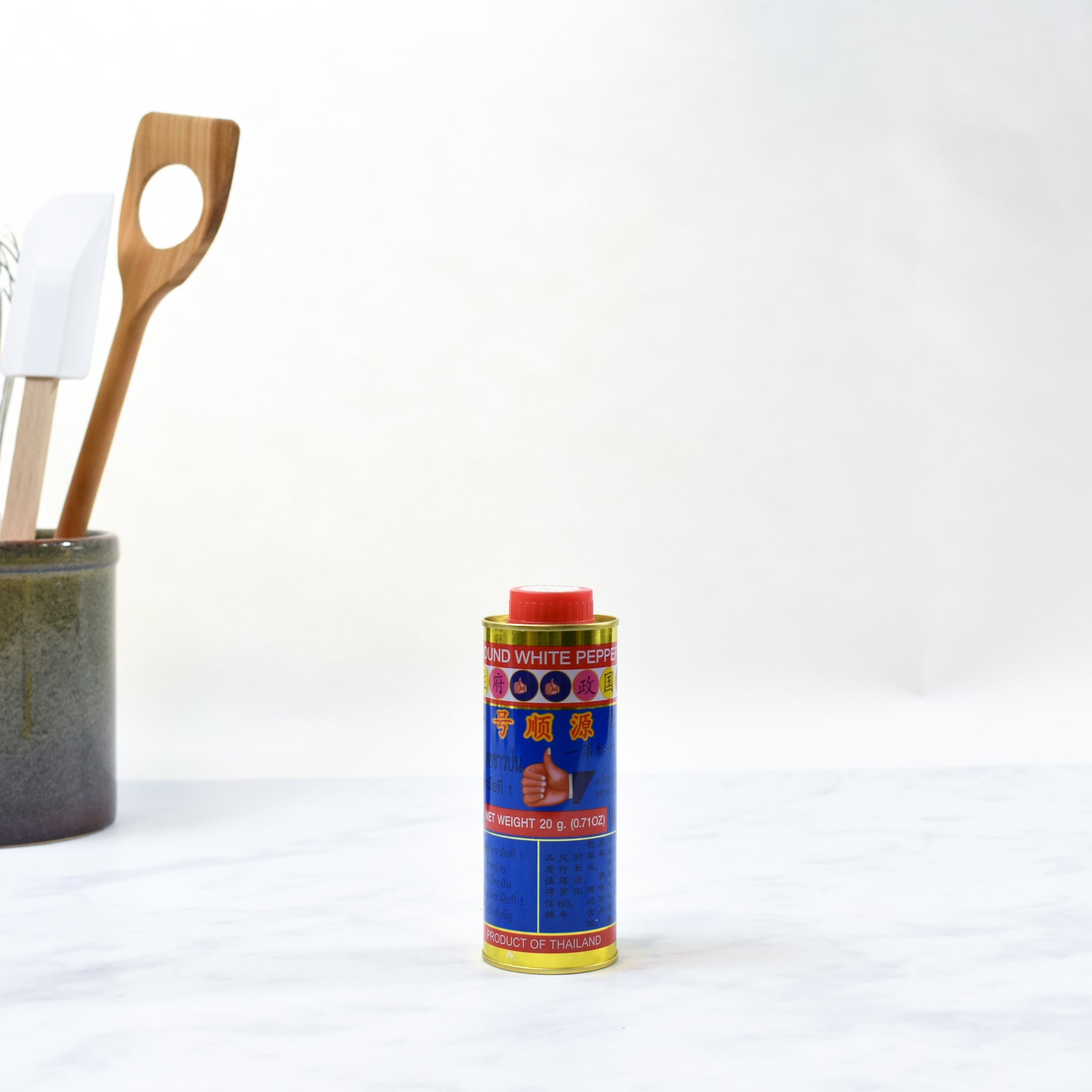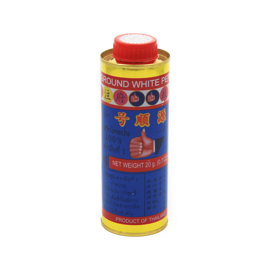Thai Hand white pepper powder is a mild, white pepper which adds fragrant seasoning to dishes. This white pepper is gentler than black pepper as it contains less piperine, the substance responsible for pepper’s pungency.