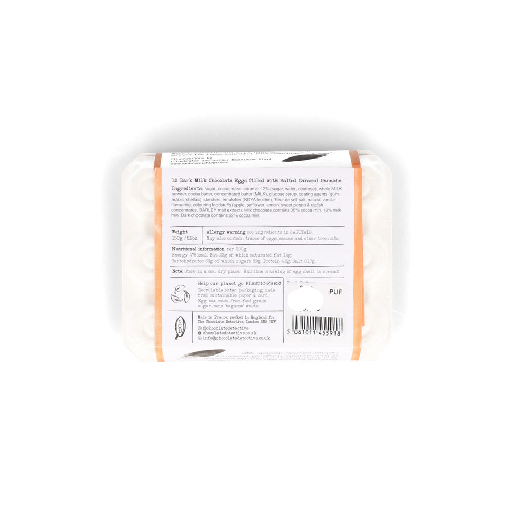 The eggs are made in France using bean-to-bar couverture. The ethically produced cocoa comes from a large farm in Ecuador.