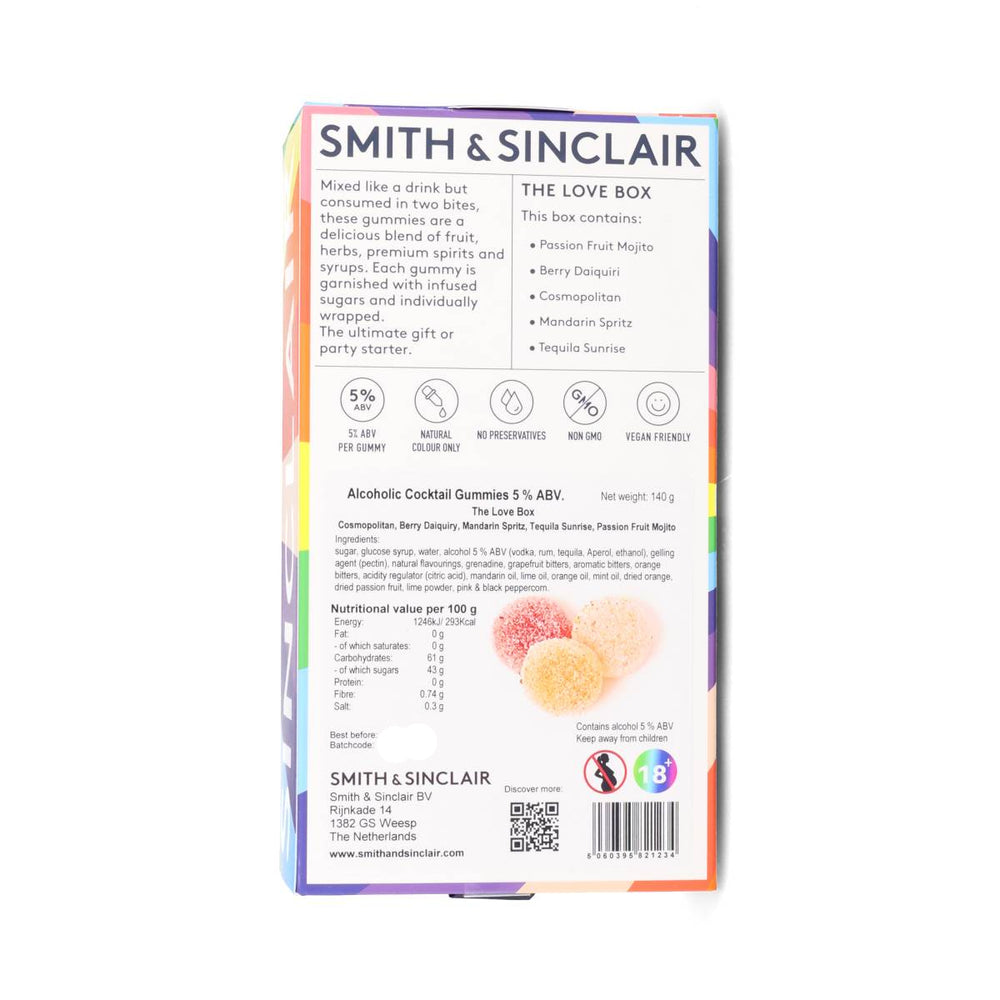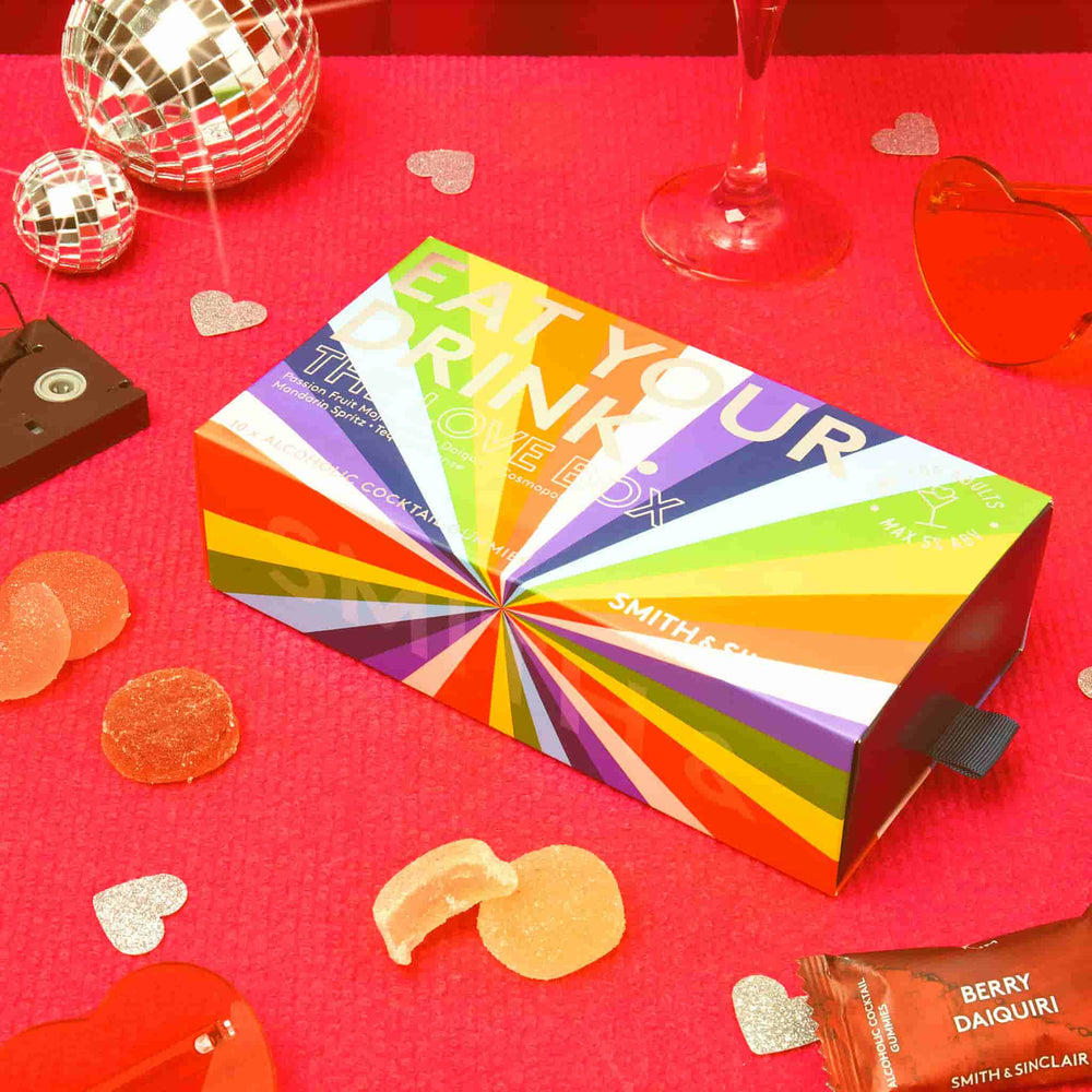 Spread the love with Eat Your Drink alcoholic gummies. Open the rainbow box to discover jelly sweets inspired by popular cocktails. They’re perfect for parties, picnics and snacking on the go. These contain real alcohol - after five you can’t drive.