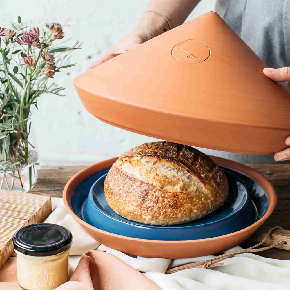Designed and developed in Britain, the Spring Oven is a terracotta ovenware pot for baking bread with the use of steam. Baking with steam helps your dough rise and develop a crunchy crust, but it’s not always easy to create a suitably humid environment in a conventional oven. The Spring Oven solves that problem with a water channel in the base that generates steam while you bake. The sloping lid focuses heat close to your bread and also allows condensed water to run back into the channel.