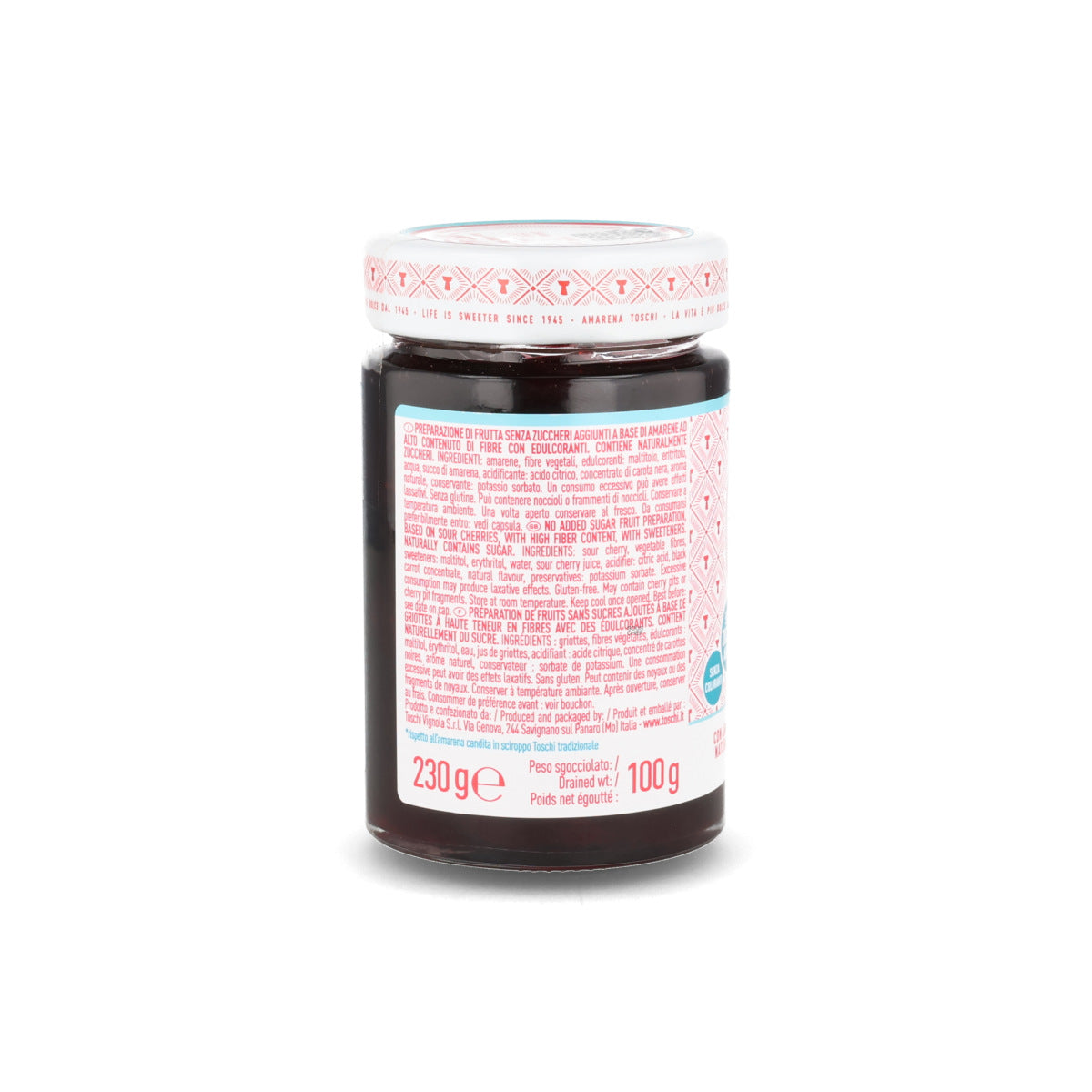 The cherries contain 50% less calories than Toschi’s original recipe. If you’re looking to cut back on sugar, they’re a great option for baked goods and desserts. Try adding them to tarts, crêpes or a Black Forest gateau.