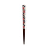 These wooden chopsticks are decorated with a delicate floral pattern in shades of red and pale pink. They are a pretty alternative to plain lacquered chopsticks, adding a playful touch to any dining occasion. Made from strong and durable lancewood, these chopsticks are designed to be used again and again. Use them to eat sashimi, agedashi tofu and donburi with family and friends.