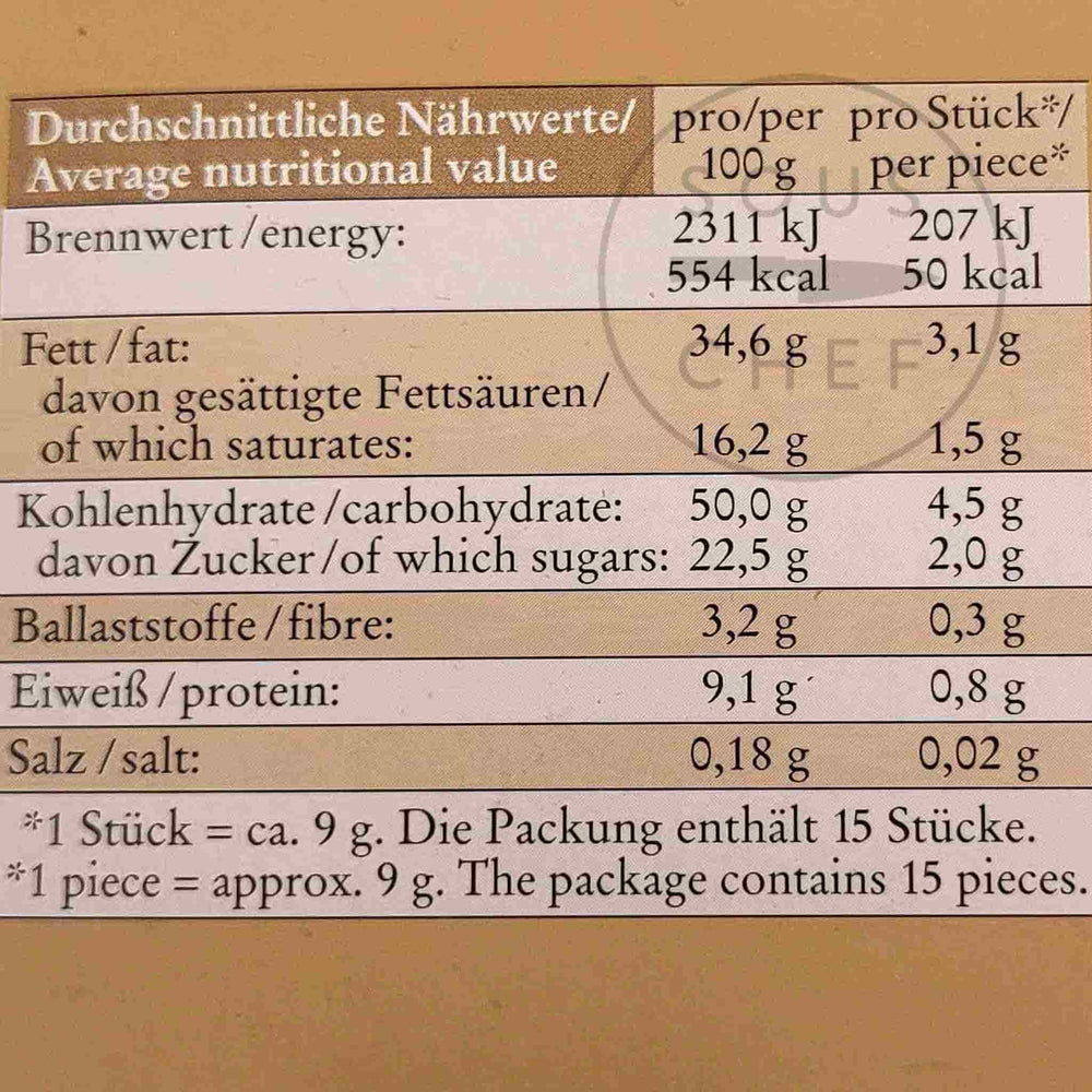 Product formulations and details may change. For the latest ingredients and allergen information always check product packaging prior to consumption. Ingredients: Wheat flour, butter 24%, sugar, almonds, hazelnuts, waxy corn starch, dextrose, natural bourbon vanilla flavour, egg white powder, whole egg powder, wheat starch, salt, palm fat, lemon oil. Contains milk.