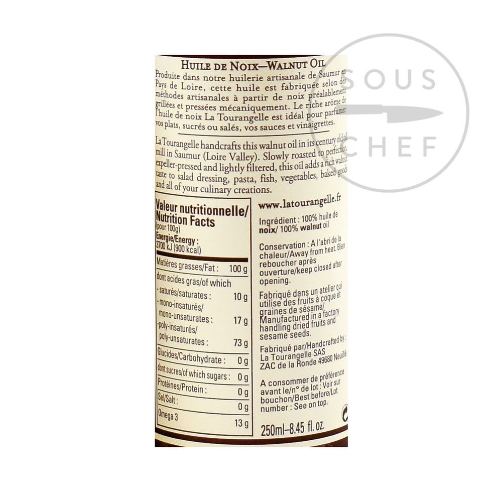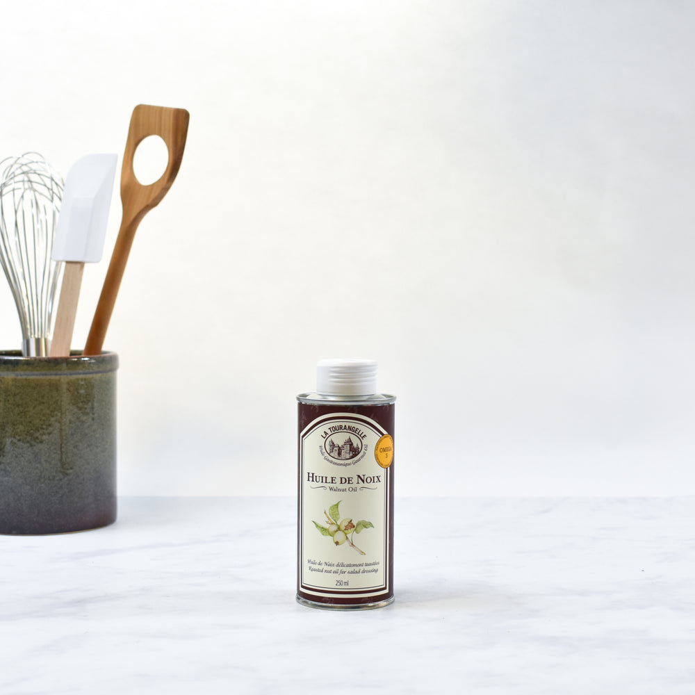 La Tourangelle walnut oil is hand crafted in the Tourangelle artisan oil mill based in the Loire Valley in France. The walnut oil is made from the best walnuts, slowly roasted to perfection, and then pressed. Its strong, rustic flavours go brilliantly with raw bitter vegetables like endives and chicory. A drizzle of the caramel-coloured walnut oil enhances the flavour of hard, nutty cheese, and makes bean and lentil dishes that little bit more sophisticated.