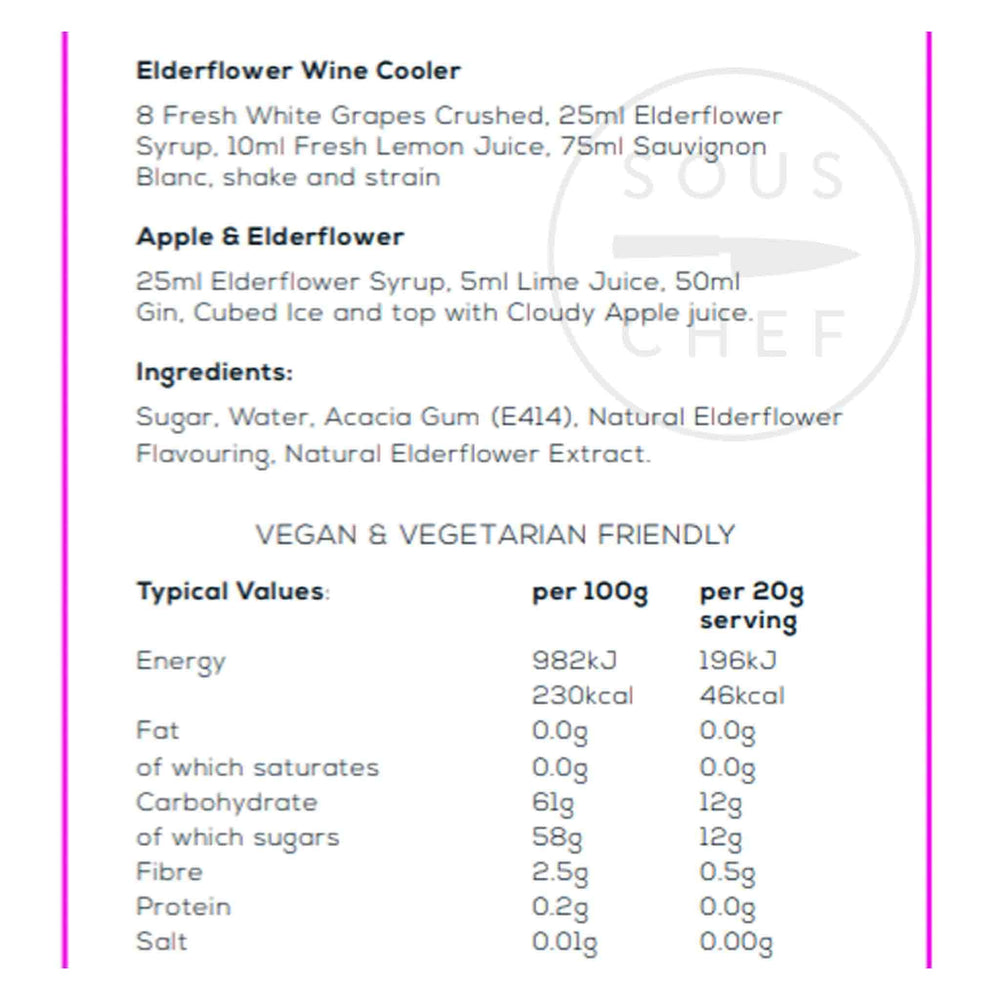 Product formulations and details may change. For the latest ingredients and allergen information always check product packaging prior to consumption. Ingredients: Sugar, water, emulsifier: acacia gum (E414), flavourings: natural elderflower flavouring