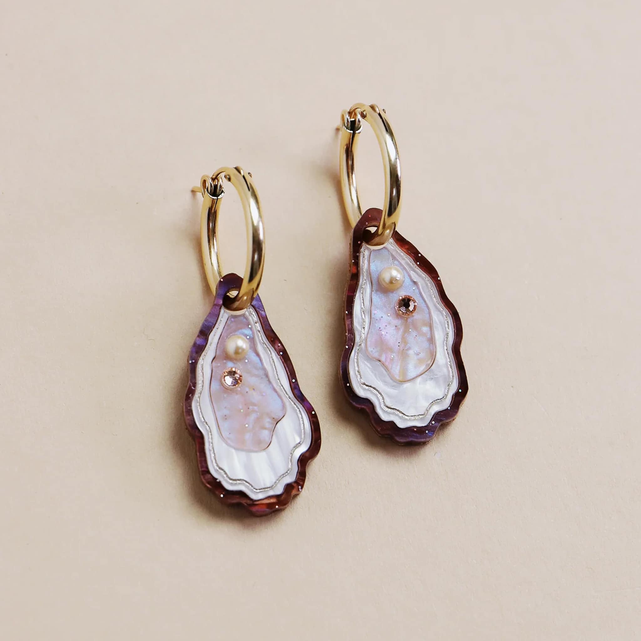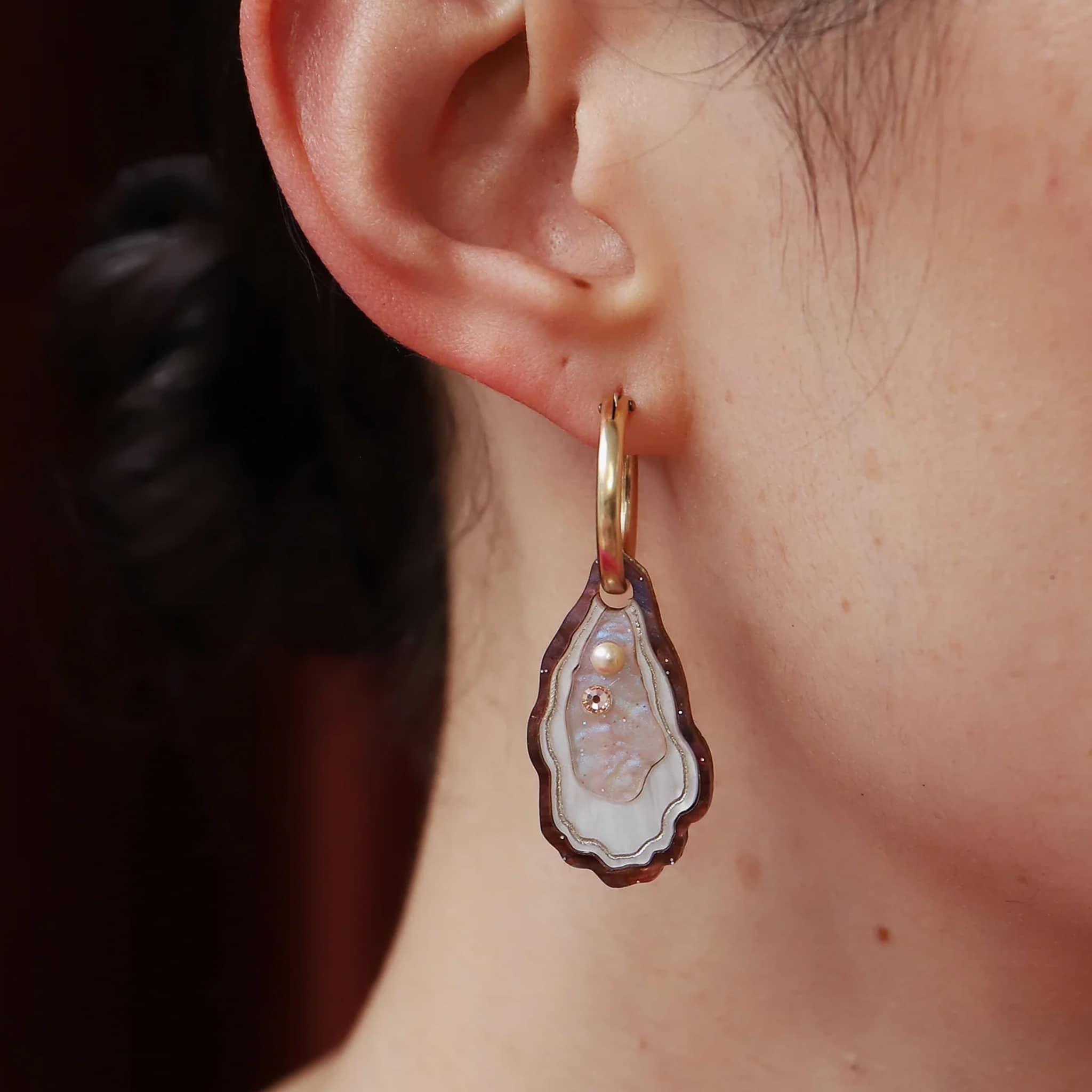 Oyster earrings are sure to turn heads at dinner parties. Wear them together or mix and match with Wolf & Moon’s king prawn earrings.