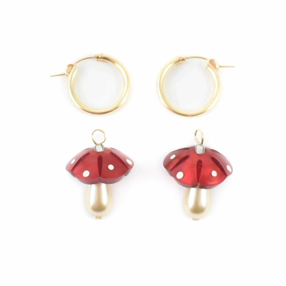 Wolf & Moon Red Mushroom Hoop Earrings