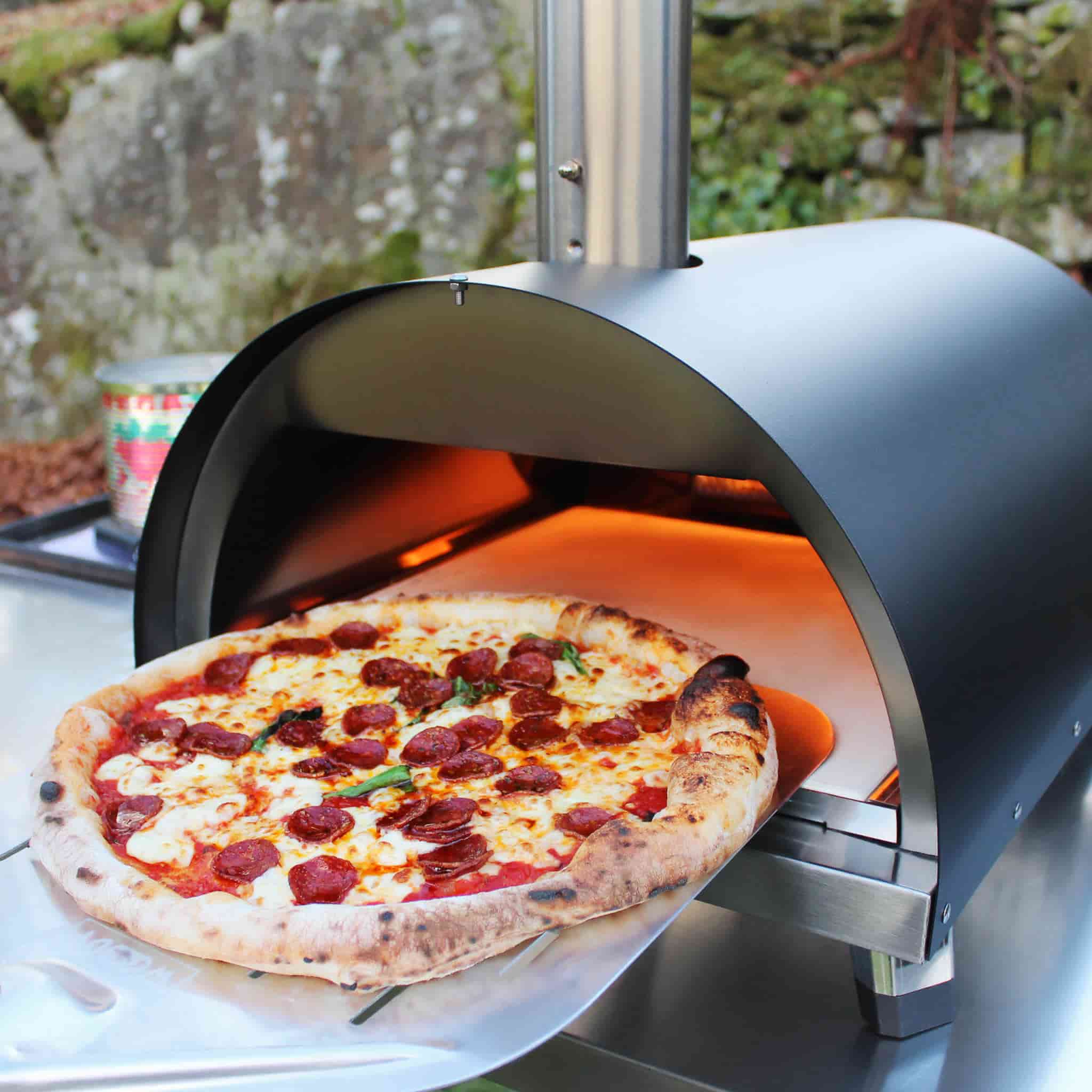 The Woody pizza oven is ready to use right out of the box and includes everything you need to get started on your pizza adventure. The 12" perforated pizza peel lets you easily slide your pizza into the oven and transfer it to a plate or board once cooked.