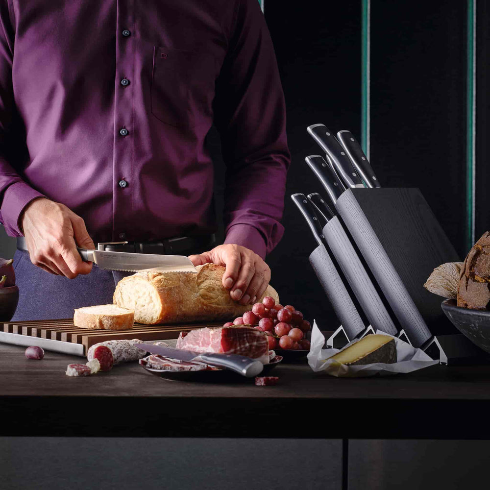 Whether you're slicing through crusty baguettes or soft brioche, the Wusthof Ikon Bread Knife, with its balanced design and full tang construction, delivers superior strength and stability, transforming your bread-cutting tasks into a seamless culinary experience.