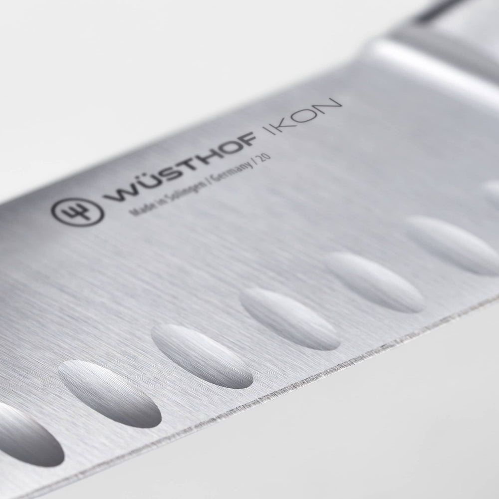 The Wusthof Ikon Santoku Knife is the Asian counterpart to the European chef's knife, and it's truly versatile. This elegant 17cm knife is indispensable in kitchens around the world, blending luxurious craftsmanship with unparalleled performance.