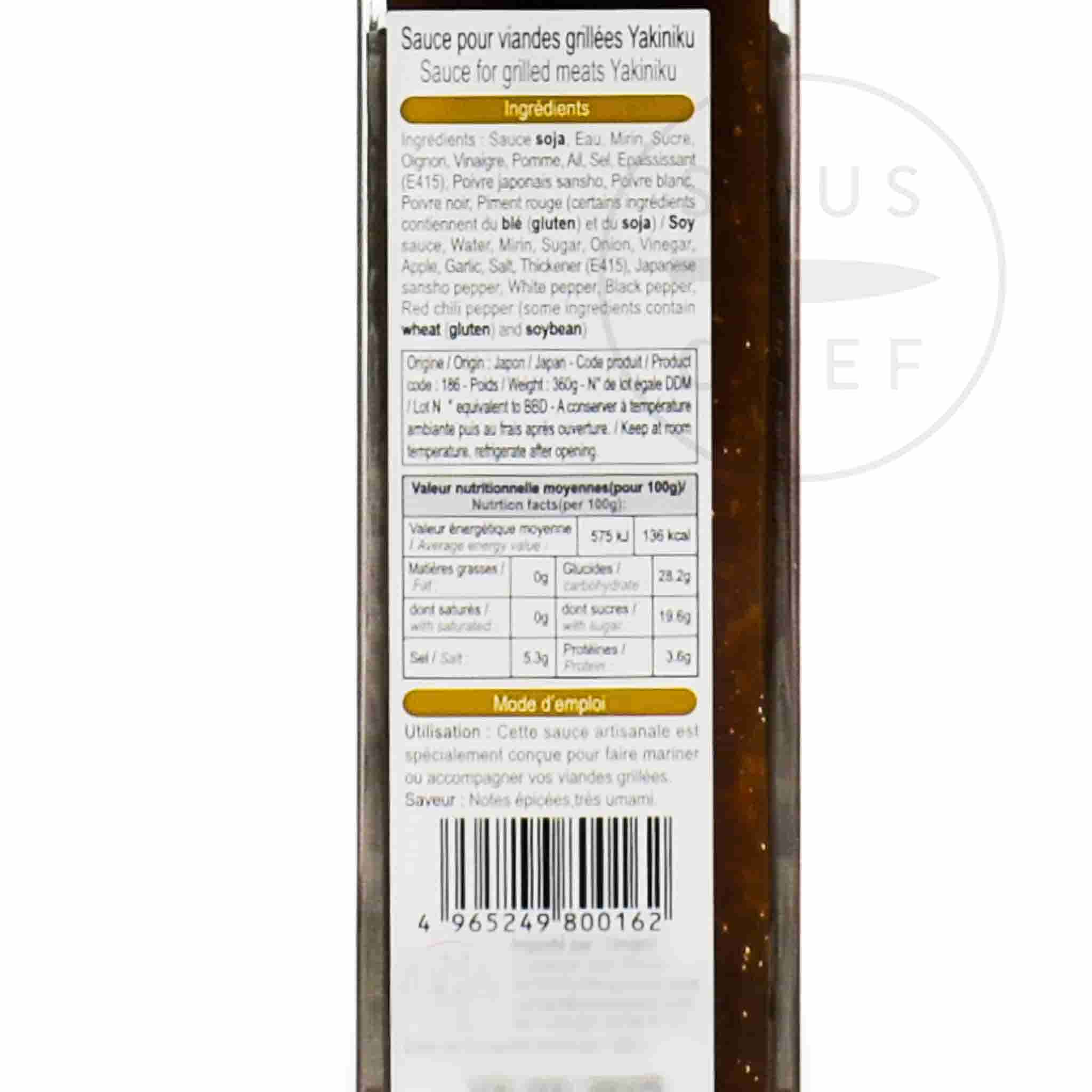 Yakiniku sauce for grilled meat is fantastic with smoky barbecued dishes. Use this sauce as a marinade and coat your meat or seafood before grilling. Try it with seared octopus or scallops, or with strips of chicken and steak.