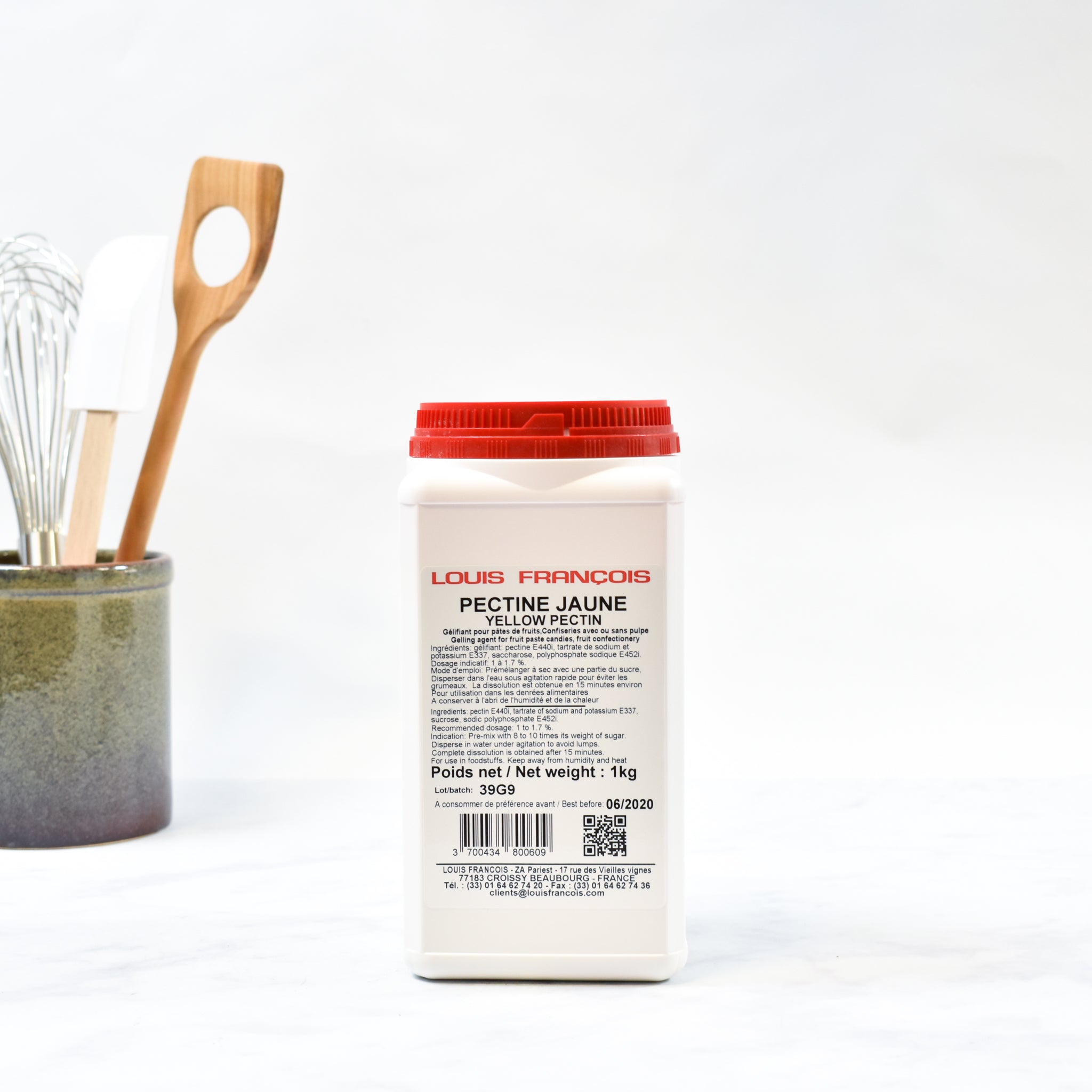 Louis Francois yellow pectin is a powder used to set sugar rich fruit purees and juices into non-reversible substances, which cannot be melted and reset through heating. Great for jellies, patisserie, and fruit gums or candies. Can be used alongside tartaric acid to help the gelling process.