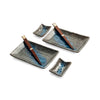 The Yonaka sushi serving set has a striking black and blue design. Yonaka means ‘midnight’ in Japanese and this is reflected in the moody colour scheme. Each glazed stoneware plate has a streak of dark blue in the centre.
