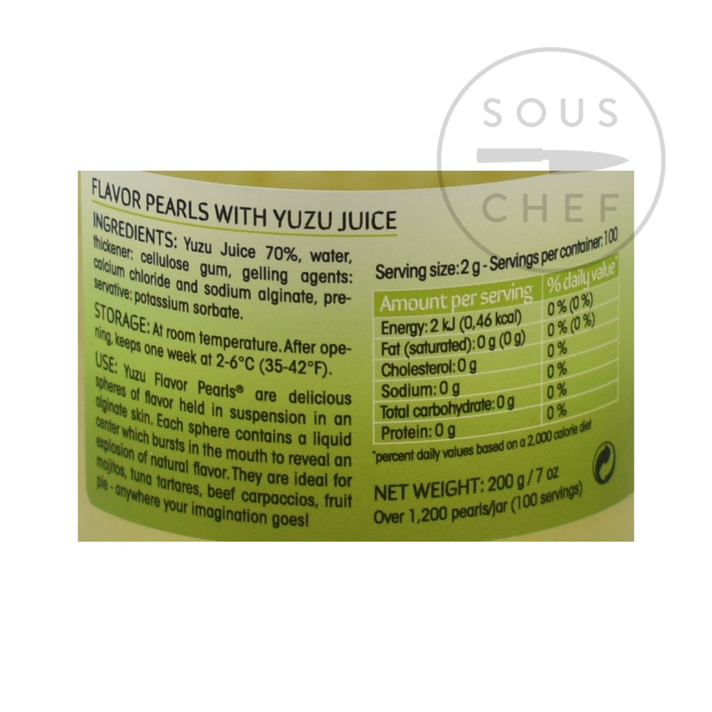 Product formulations and details may change. For the latest ingredients and allergen information always check product packaging prior to consumption. Ingredients: yuzu juice (70%), water, thickener: cellulose gum, firming agent: calcium chloride, gelling agent: sodium alginate.