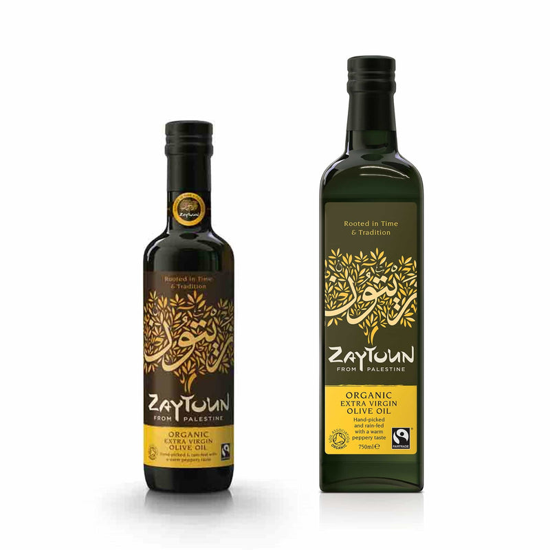 Zaytoun’s Fairtrade extra virgin olive oil has been sourced through Canaan Fair Trade in Jenin. The Palestinian extra virgin olive oil is pressed from the fruit of ancient trees nestled on stone terraces in the sun-drenched West Bank hills, which have been tended by hand through generations of family farmers.